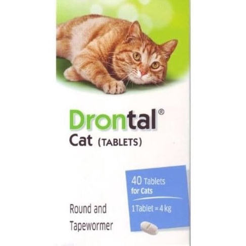 Drontal obat cacing kucing, rp30.000. Berikan satu tablet dari bayer drontal untuk satu kucing berukuran maksimal 10 kg. Memberikan obat cacing yang dijual di petshop seperti drontal. Digunakan pada kucing untuk mengobati cacing gelang dan cacing pita. Apabila kamu membutuhkan obat yang bisa membunuh cacing gelang dan cacing pita, maka obat yang dianjurkan adalah drontal cat atau drontal plus.